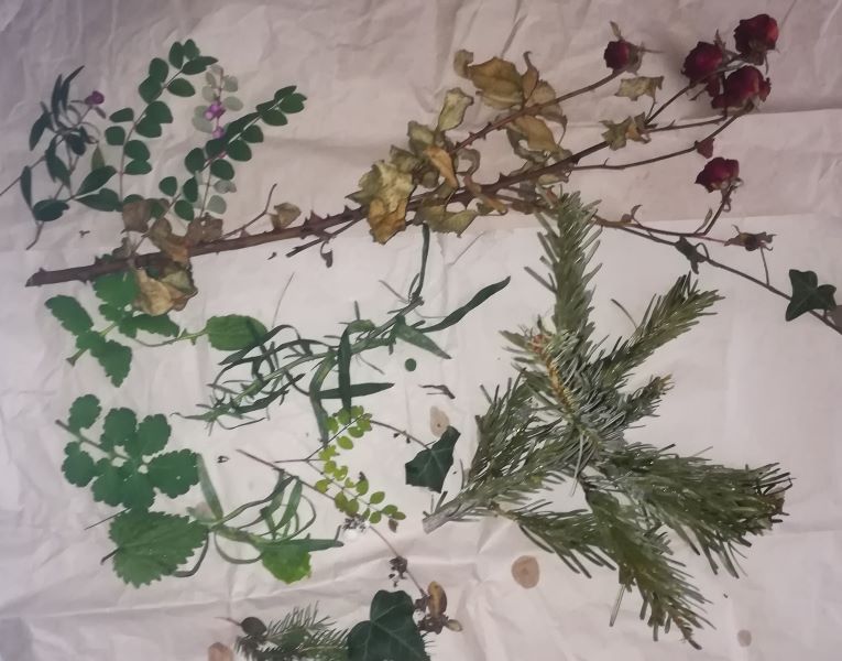 Als erstes heißt es raus aus dem Haus und ab an die frische Luft. Wir machen einen Spaziergang rund um den Block, am besten in den nächstgelegenen Park. Mit einer Tasche bepackt suchen wir nach Sträuchern, abgefallenen Ästen und kleinen Pflanzen. |