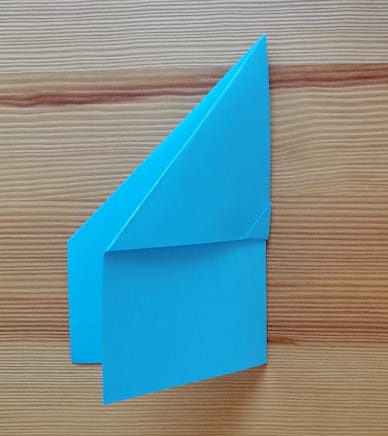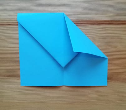 Falte anschließend das Dreieck plus einen zusätzlichen, ca. 1 cm breiten, Streifen zur Mittellinie. |