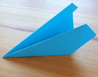 Klappt ihr zum Beispiel die eine Hinterkante der Flugträger hoch und die andere runter, macht der Pfeil Kurvenflüge. Wenn ihr dagegen beide Kanten nach oben klappt und den Pfeil mit kräftigem Schwung leicht abwärts werft, kann es sein, dass der Papierpfeil den ein oder anderen Looping fliegt – allerdings nur bei absoluter Windstille.