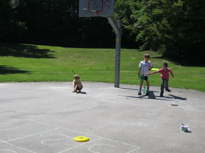 Meist waren wir mit einem Spielekoffer vor Ort, der alltägliche Spielmaterialien wie Ball, Seile, Kreide und Murmeln enthielt, sowie einer immer neuen Kreativ-Werkstatt. Zum Auftakt und Abschluss unterstützte der Spielbus das Projekt mit Murmelbahn und Klötzchenbaustelle.