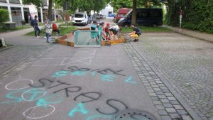 - Spiele für Sommerstrassen und verkehrsberuhigte Bereiche ohne großen Materialaufwand kennenlernen, ausprobieren und anzuleiten auf einer temporären Spielstraße in München Neuhausen