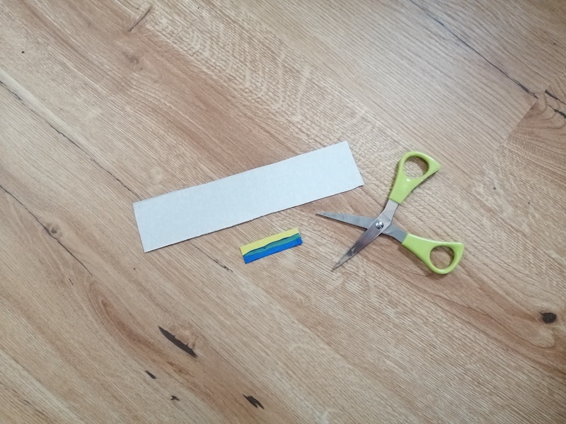 Während die Rollen trocknen, schneidest du aus dem Karton ein kleines Stück aus, das lang genug ist, um die beiden Rollen zu verbinden. Das Kartonstück kannst du anschließend auch bunt bemalen. |
