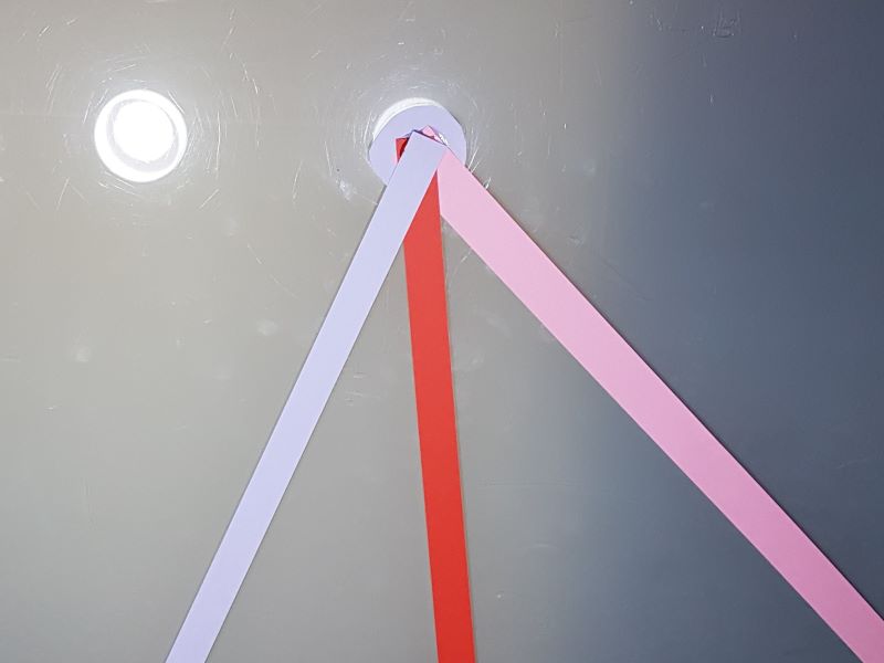Als nächstes machen wir das Gleiche mit dem anderen Ende der Streifen. Wir kleben diese wiederum auf den dritten Punkt und wenn wir alle Streifen geklebt haben, dann kleben wir den vierten Punkt auf. |