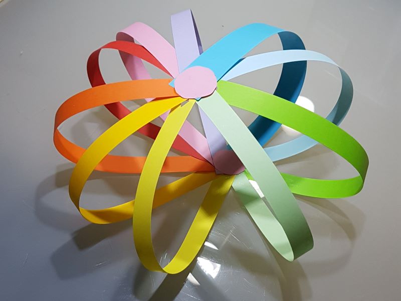Wenn wir alle unsere Streifen geklebt haben, kleben wir einen weiteren Punkt oben auf die Streifen. Nun haben wir den Punkt oben und unten. |