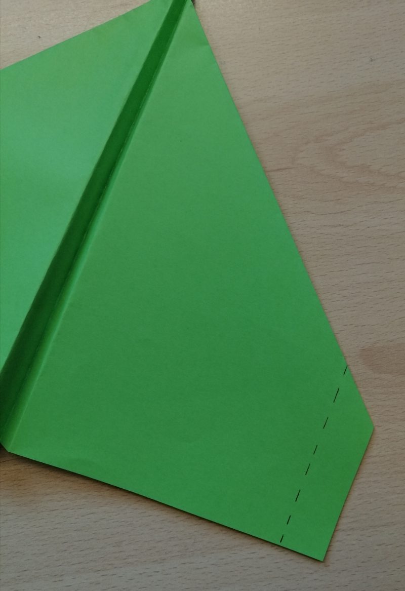 Zeichne die Faltmarkierungen leicht mit Bleistift vor und falte dann die Flügel nach außen. |