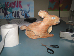 Für den dicken Hoppelhasen kannst du dir erst einmal einen unserer beiden Vorlagen-Hasen aussuchen und die Vorlagen dann ausdrucken. Du kannst aber auch deinen eigenen Hasen malen oder malen lassen. Denkt aber daran das du eine Vorder- und Rückseite braucht. Die Rückseite ist einfach die Vorderseite nur Spiegelverkehrt.
