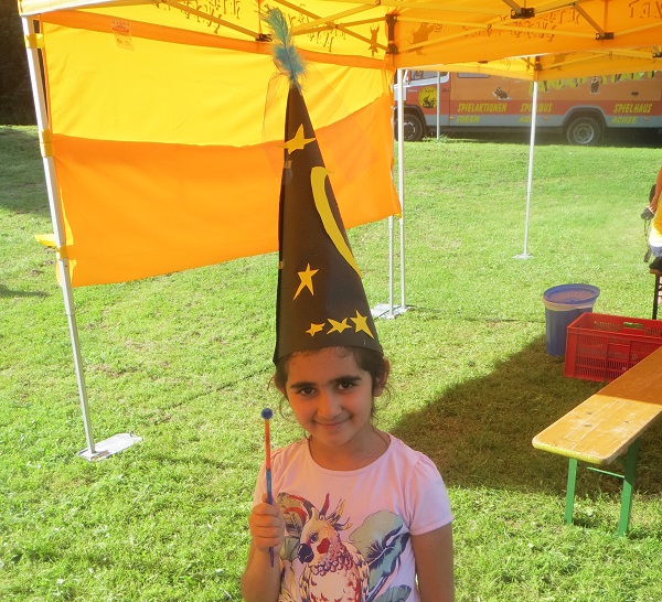 - Klebe die ausgeschnittenen Sachen auf deinen Zauberhut