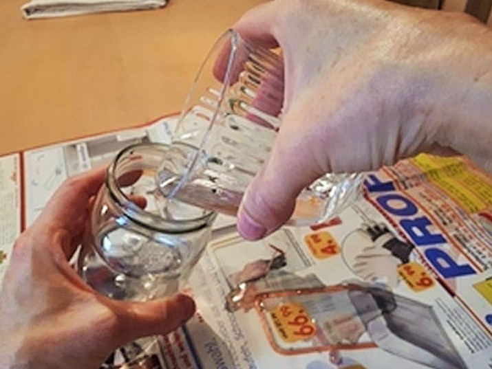 Fülle jetzt dein Glas mit Wasser randvoll auf. Drehe den Deckel zu.
