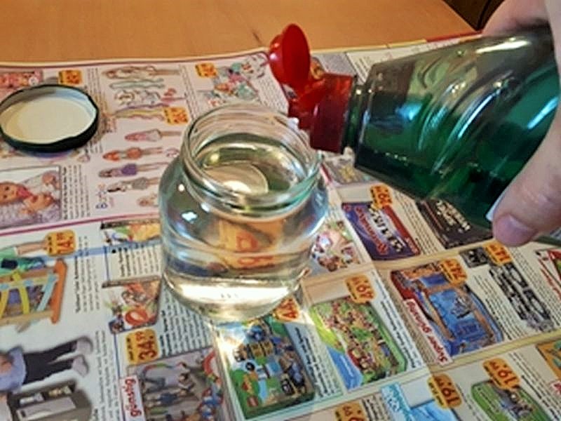 Wichtig: Es darf nicht mehr Spülmittel sein, sonst schäumt das Wasser zu sehr.