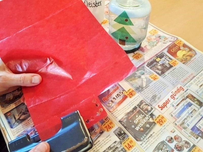 Trage eine dünne Schicht Kleister zusätzlich über das Transparentpapier auf. So klebt es am Schluss noch viel besser.