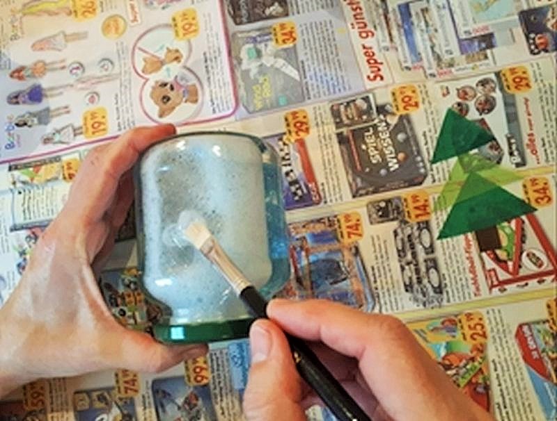 Trage nun mit dem Pinsel den Kleister auf das Glas auf.