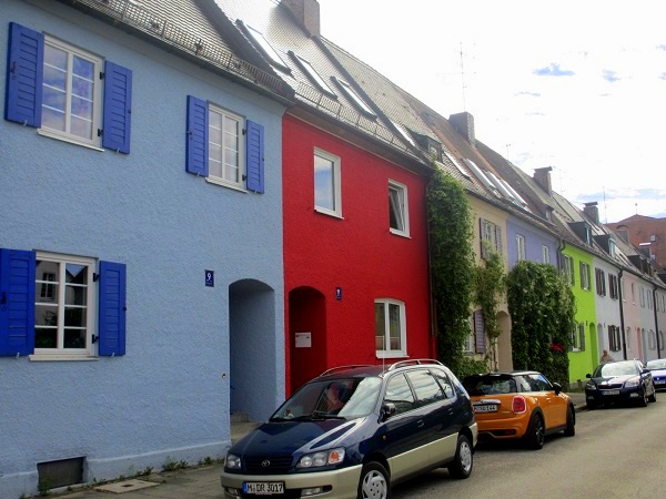 In der Bernrieder Straße kannst du mehrere Hausfassaden sehen, die bunt angemalt sind. Jedes Haus hat eine andere Farbe. Unsere Forscher haben folgende Farben gesehen: blau, hellgrün, dunkelgrün, rot, rosa, gelb, beige, gold, grau, weiß und braun.