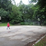 In der Nähe vom Wasserspielplatz gibt es einen Bolzplatz. Aftandil (10) und Abraham (9) finden es toll, dass es im Westpark auch extra Bolzplätze gibt. Dieser hier gefällt ihnen besonders gut. Auch Josef (10) geht hier gerne hin zum Kicken.