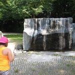 Hinter der großen Wiese beim Westsee hat Jessica (8) einen Brunnen entdeckt. Es sind große Steine, an denen das Wasser hinunterläuft.