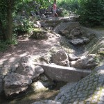 Beim Wasserspielplatz im Westpark gibt es einen kleinen Hügel. Dort fließt ein kleiner Bachlauf hinunter, wo du prima spielen kannst. Josef (10) und Silvan (9) haben uns diesen Geheimtipp gezeigt.