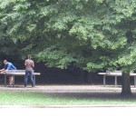 Hier gibt es zwei Tischtennisplatten zum Spielen.