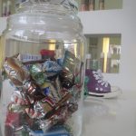 Wo steht das Bonbonglas? a) Bei einem Friseur. b) Bei einem Zahnarzt. c) In einem Süßigkeitenladen.