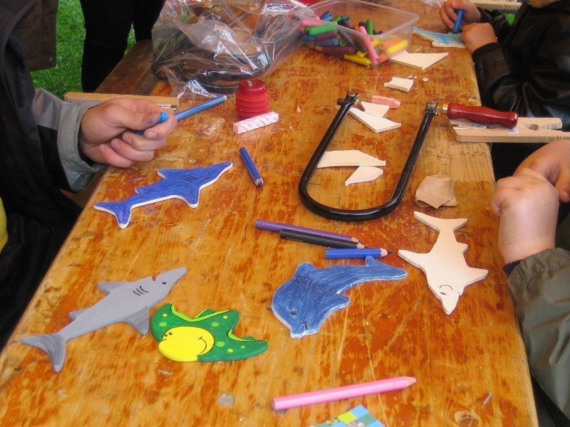 Am Stand vom Dschungelpalast gab es tolle Angebote zum passenden Thema „Unterwasser“. Dort konnten die Kinder Haie, Delphine oder Seesterne selbst aussägen, bemalen und beispielsweise der Mama zum Muttertag schenken.
