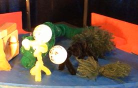 Der schwarze Panther und das Krokodil wollten das Erdmännchen fressen. Da begann der Kampf. Dann kam der Jäger und vertrieb das Krokodil. Jetzt freundeten sich Panther und Erdmännchen an und fraßen sich nicht mehr.
