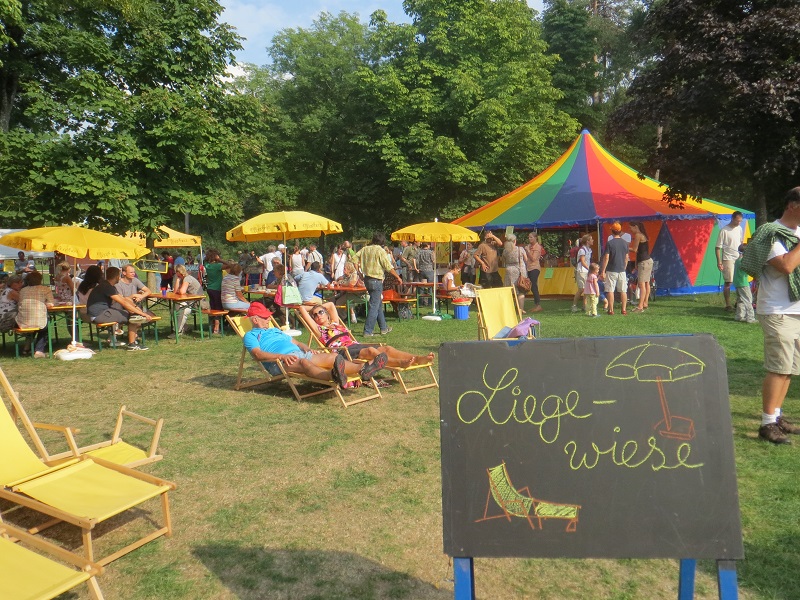In der Pause kannst du dir eine Erfrischung in der Zirkus-Kantine holen oder einfach in einem Liegestuhl vor dem Zelt entspannen.