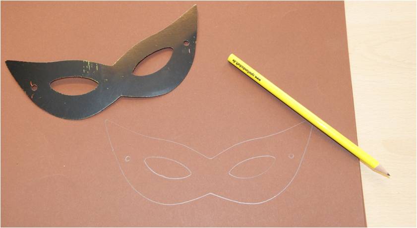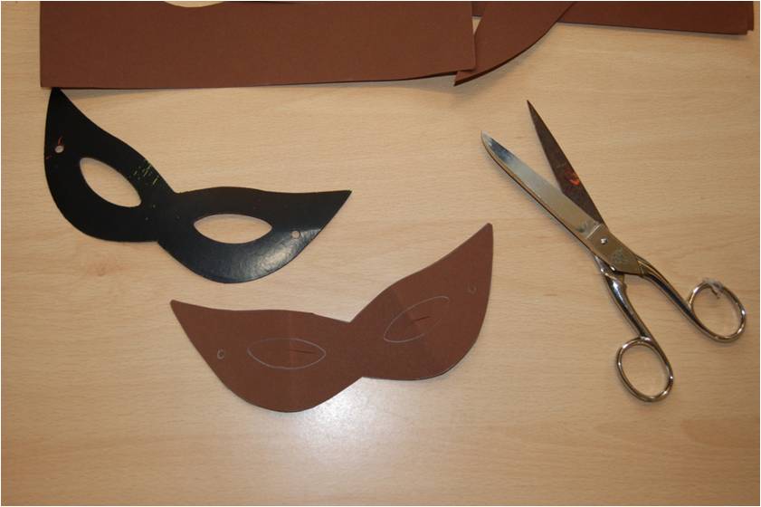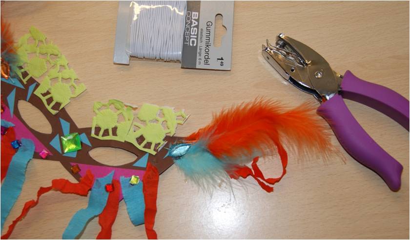 Jetzt musst du an den Seiten deiner Maske nur noch zwei Löcher ausstanzen und eine Schnur einfädeln , damit du die Maske auch tragen kannst.