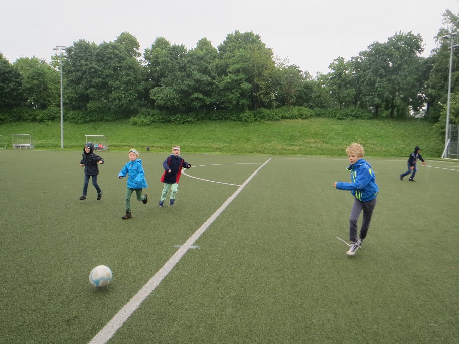 Anton (9), Lars (9) und Noah (9) spielen hier im Verein Fußball.