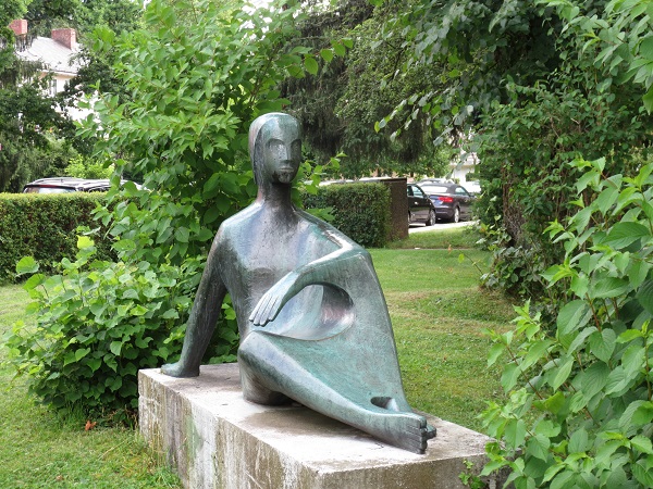 In der Wohnanlage in der Hinterbärenbadstraße Ecke Fernpaßstraße haben die Forscherinnen Mihaela (9) und Dilara (10) eine Frauenstatue aus Eisen gefunden. Sie sitzt auf einem Steinsockel.