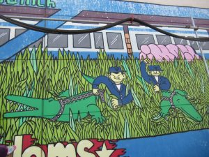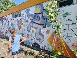 Zum Beispiel in der Nähe der U-Bahn Haltestelle Aidenbachstraße in der Gmunderstraße? Dort gibt es zahlreiche Streetart (Straßenkunst) – Kunterbunt und in allen Formen und Figuren. Wenn du dort bist: Entdeckst du eine kleine Katze, die sich in eines der kunstvollen Wandbilder geschlichen hat? Unsere Forschungsgruppe war vor allem begeistert von der Vielfältigkeit der Kunstwerke! Es gibt Tiere, Menschen, Flugzeuge, Aliens, Pflanzen, Schriftzüge…