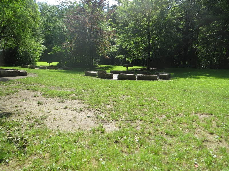 Hier findest du eine große Wiese mit mehreren Grillplätzen. Es ist viel Platz zum Laufen, Sitzen und in der Sonne entspannen.