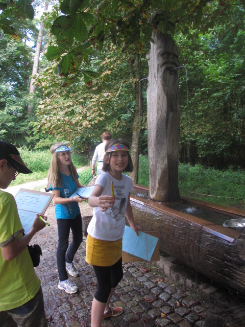 Carolin (11), Tobias (10) und Carlotta (11) haben ihn genauer untersucht. Sie fanden heraus, dass viele Jogger, Radfahrer und Wanderer den Brunnen als Erfrischung nutzen und ihre Flaschen wieder auffüllen. Auch Hunde können hier gut trinken. Für sie gibt es einen eigenen Trinknapf.
