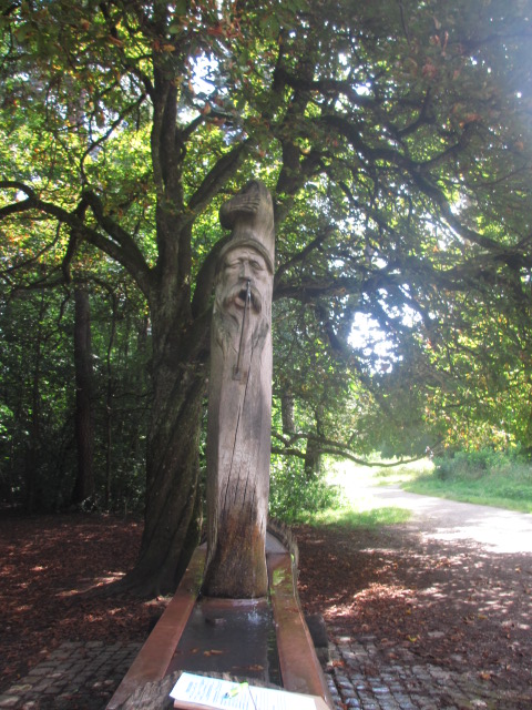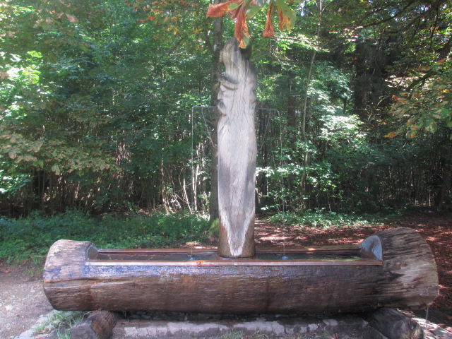 Der Holzbrunnen ist direkt am Eingang zum Perlacher Forst.