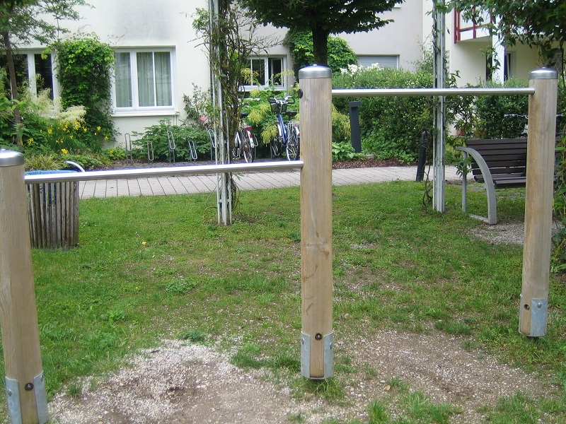 Zwei kleinere Spielplätze in den Innenhöfen der Wohnanlage am Karneidplatz.