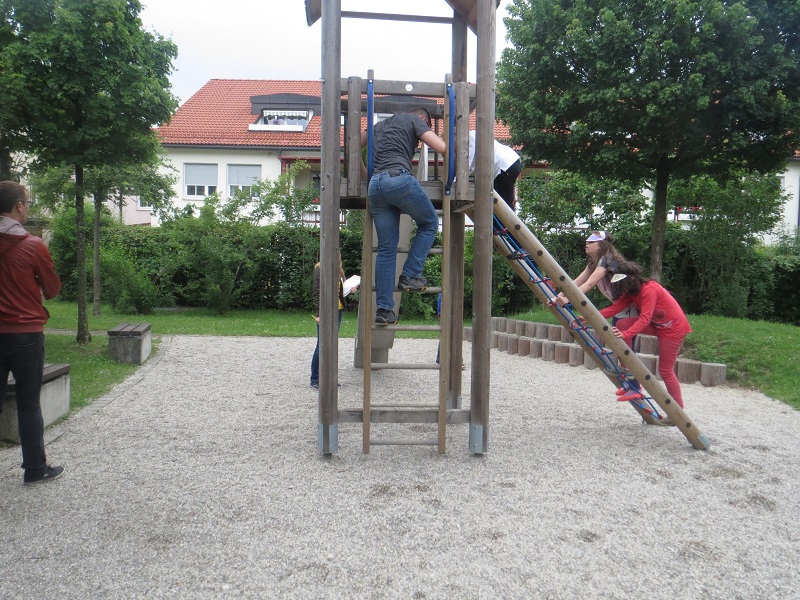 Die Forscher Julian, Tanja, Hatice, Christian, Jonas, Tom und Jonathan haben die Spielplätze entdeckt. Leider dürfen sie nur von Bewohnern der Wohnanlage genutzt werden. Schade, sagen unsere Forscher. Sie haben aber trotzdem einiges ausprobiert: man kann balancieren, klettern, rutschen und schaukeln. Trotzdem erhält der Spielplatz die Note 3 bis 4, weil es dort etwas zu wenig zum Spielen gibt. Tom findet es aber toll, dass dort überhaupt ein Spielplatz ist, für die Kinder die dort wohnen.