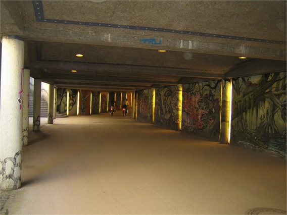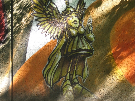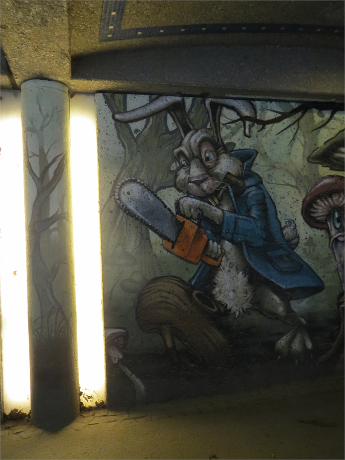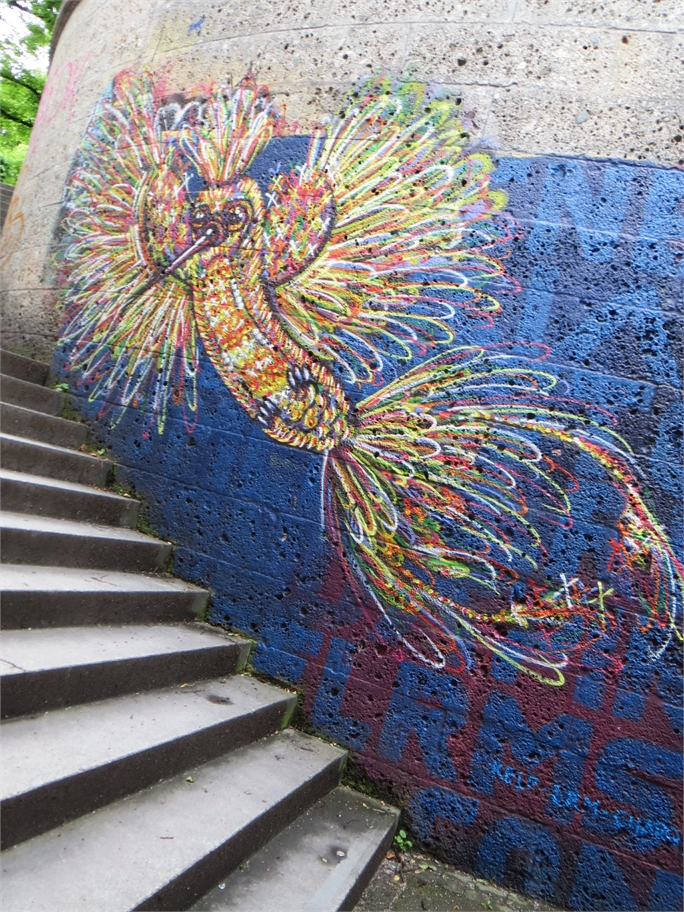Die Fußgänger- und Fahrradunterführung unter dem Friedensengel ist etwas ganz Besonderes: Sie ist mit tollen Graffitibildern von einem prominenten Sprayer Namens Loomit und seinen Freunden gestaltet. Welches von den vielen Bildern gefällt dir am Besten?