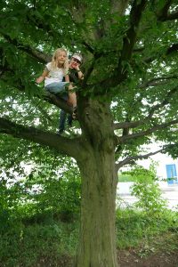 Flora (7) und Julian (9) haben den Baum erklettert.