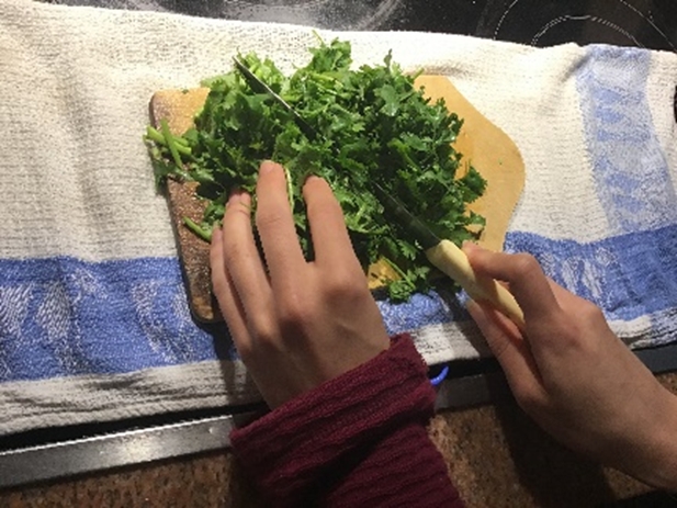 Knoblauch schälen und in feine kleine Würfel schneiden
