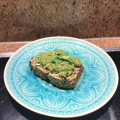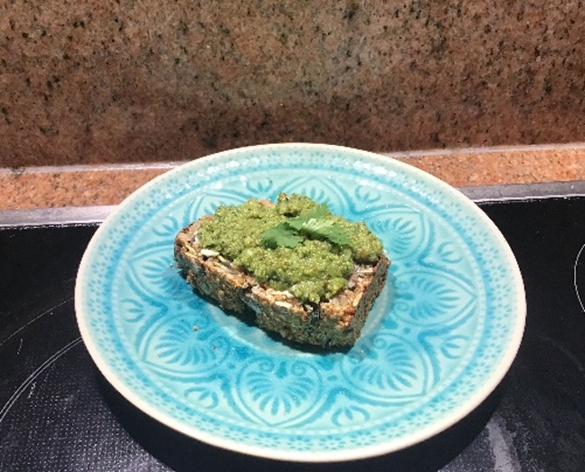 Und wie du auf dem Foto sehen kannst, kann man Pesto nicht nur für Nudeln verwenden, sondern auch als Aufstrich benutzen.