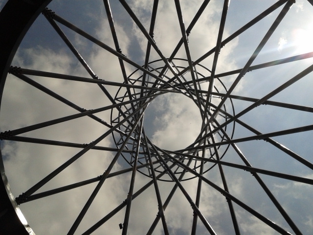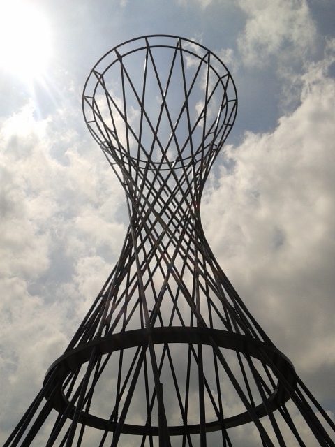 Es wurde von der Künstlerin Rita McBride entworfen. Die „Mae West“ besteht aus insgesamt 32 Stäben, ist 52 Meter hoch und hat am Boden einen Durchmesser von 32 Meter. Die Anwohner von Bogenhausen haben ihr viele Spitznamen verpasst: Eierbecher, Regenschirmständer oder Fahrradfelge. Andrea (6) findet, dass sie aussieht wie eine Sanduhr. Nach was sieht die „Mae West“ für dich aus?