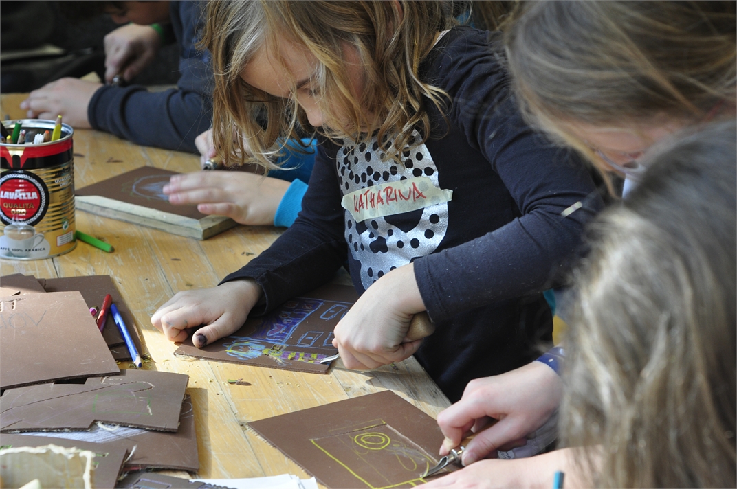 Beim Bündnis-Projekt finden bei uns verschiedene Aktionen statt. Im Jahr 2013 konntest du in der Buchkinderwerkstatt dein eigenes Buch binden und mit Linolplatten drucken. Außerdem fand bei uns das Abschlussfest mit dem Stadtteil-Quiz und der Ausstellung er gesammelten Ergebnisse statt.