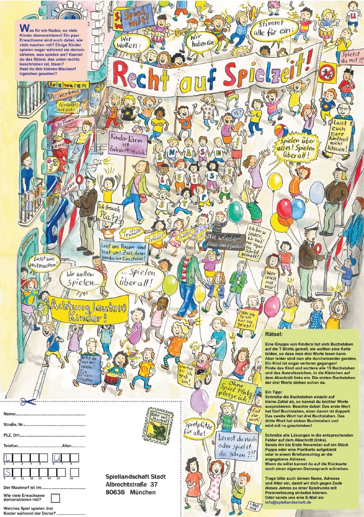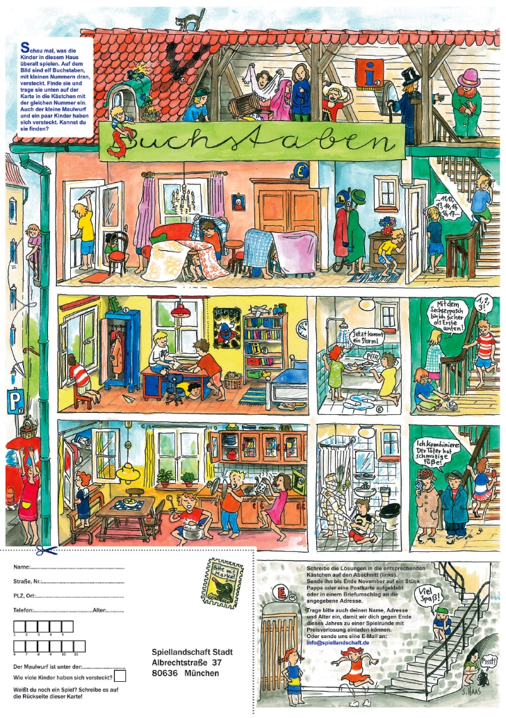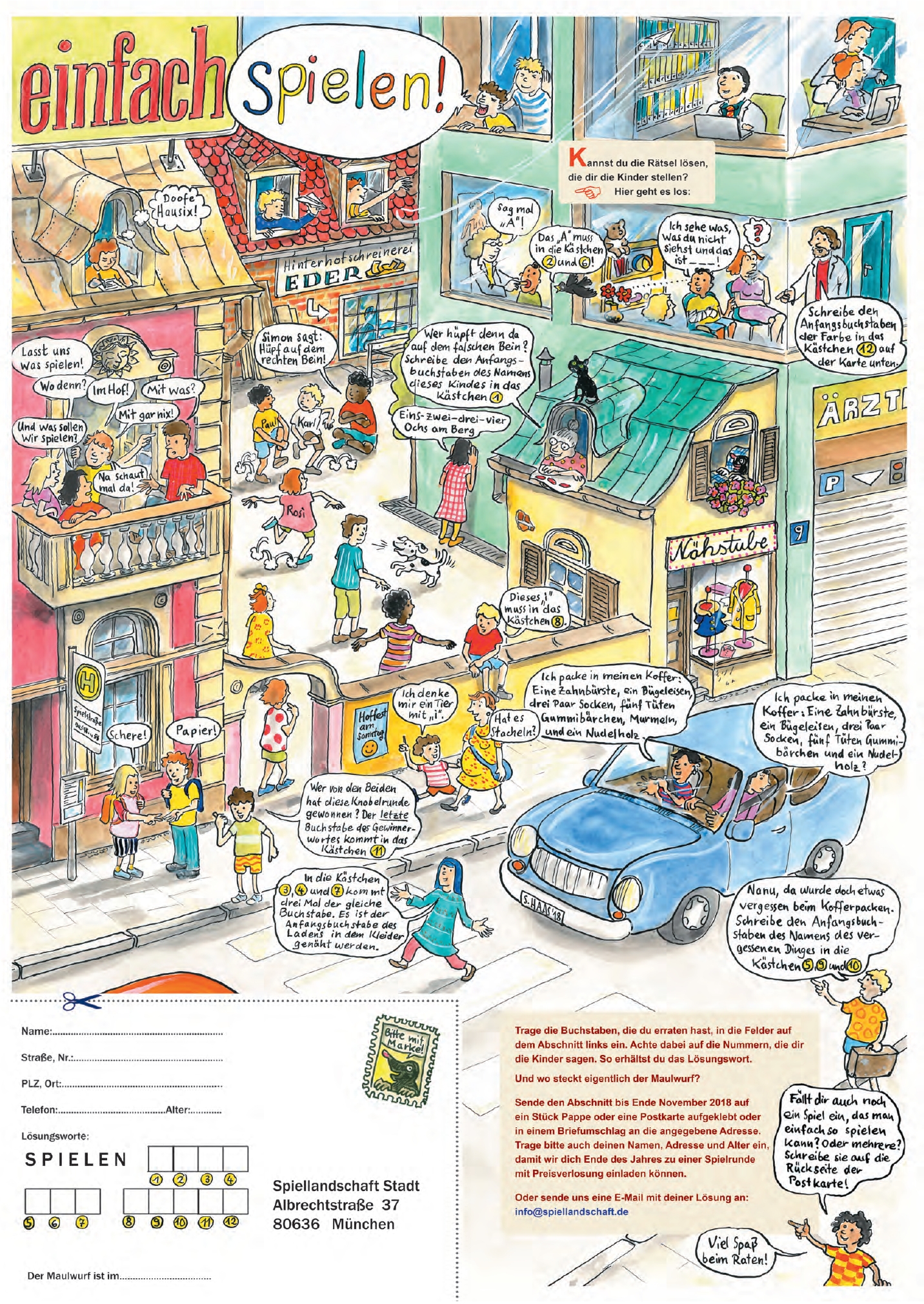 Dafür können uns deine Eltern anrufen (089-183335) oder eine E-Mail schreiben an info@spiellandschaft.de. Einfach nur Name und Adresse hinterlassen und du bekommst Post von uns!