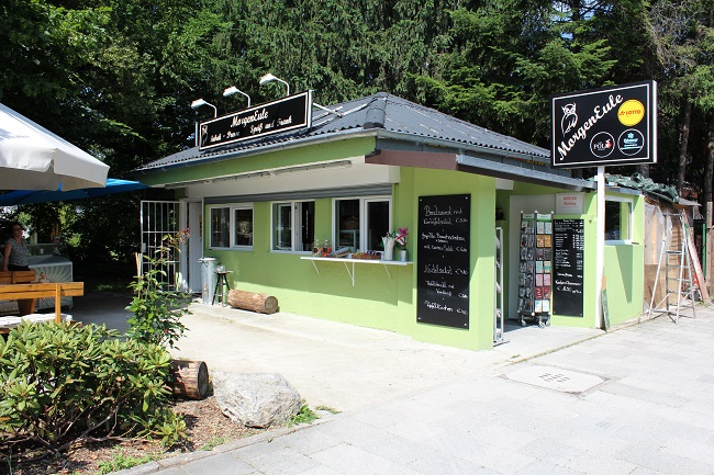 An diesem Kiosk wirst du von der Besitzerin sehr freundlich begrüßt. Unsere Forscher haben eine kleine Erfrischung von ihr geschenkt bekommen. Ihnen gefällt der Name des Ladens und dass er grün angestrichen ist.
