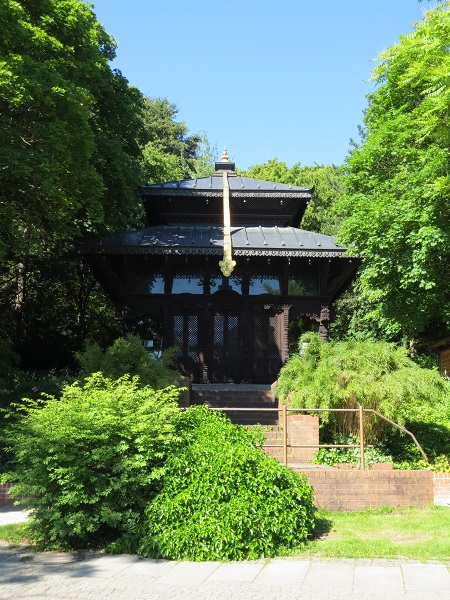 Rosina (8) hat für dich ein Foto von der Nepalpagode gemacht. Die Pagode wurde in Nepal zusammengebaut. Unsere Forscher haben herausgefunden, dass 300 nepalesischer Handwerke sieben Monate daran gearbeitet haben. Die Einzelteile wurden dann nach München gebracht und dort zusammengebaut. Du siehst viele schöne Schnitzereien an der Pagode und auch im Innenraum gibt es viel zu sehen. Wenn du ganz genau durch die Scheiben schaust, kannst du zwei Elefanten entdecken. Was kannst du noch sehen?