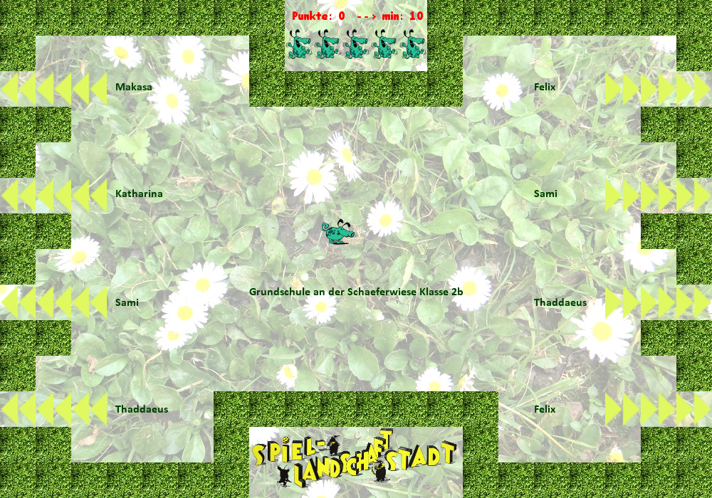 Viel Spaß beim Spielen wünschen dir die Spieleentwicklerin Genevieve und die Spieleentwickler Sami, Jonas, Thaddaeus, Jonas, Felix und Lorenz.
