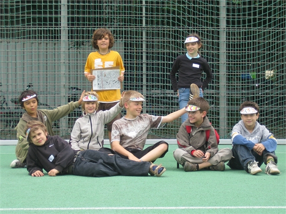 Kinder spielen dort gern auf den großen Sportplätzen,