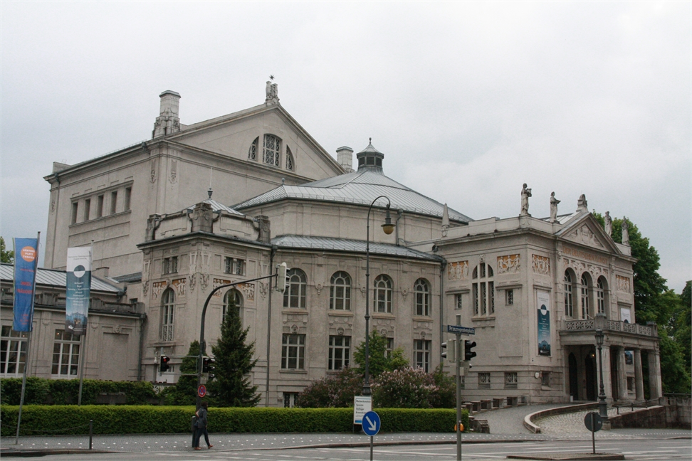Damals zogen immer mehr Leute nach Bogenhausen und damit sie nicht so weit zum nächsten Theater laufen mussten, wurde es hier vor über 100 Jahren erbaut. Das Theater ist sehr ähnlich gebaut wie das Festspielhaus in Bayreuth und der Zuschauerraum sieht ähnlich wie in diesem Opernhaus aus wie ein Amphitheater. Das heißt die Sitzplätze sind wie in einem römischen Theater im Halbkreis angeordnet.