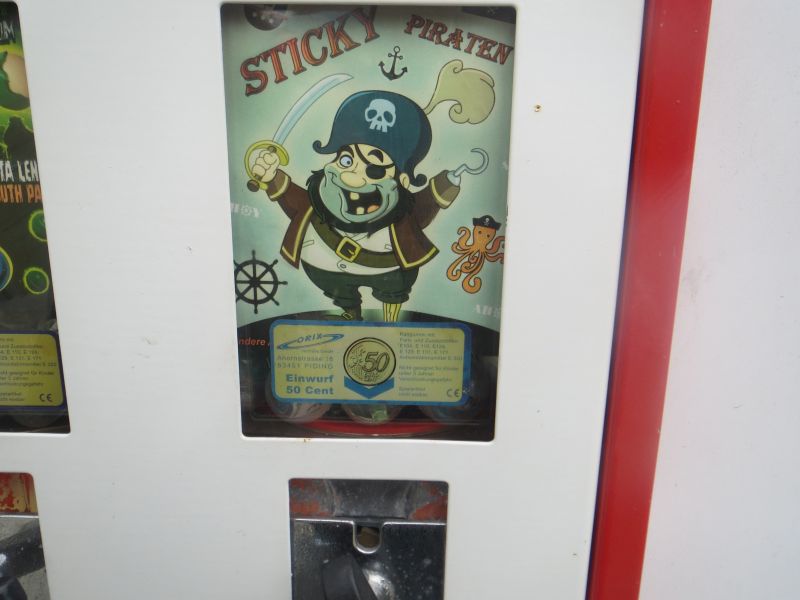 Du hast recht, der Pirat befindet sich auf einem Süßigkeitenautomat.