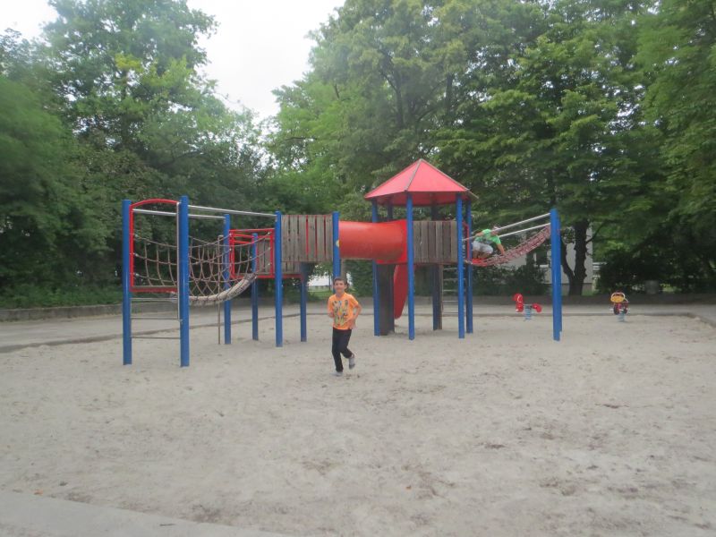 Mohamed (9), Felix (10), Florin (9), Emin (9) und Angel (12) waren als Spielplatzforscher unterwegs, um den Roten Spielplatz an der Allgäuer Straße zu erforschen. Hier findest du ein großes Spielgerüst mit Rutsche, Kletternetzen, Kletterwand, eine Röhre zum Durchkriechen und eine Feuerwehrstange. Emins (9), Angels (12) und Felix (10) Lieblingsspielgerät ist die Röhre, da man hier nicht nur durch krabbeln, sondern auch auf die Röhre drauf klettern und von oben die Aussicht genießen kann. Mohamed (9) und Florin (9) spielen am liebsten an der Kletterwand, weil sie finden, dass diese das einzige gute Spielgerät für größere Kinder ist. Allgemein sind sich die Spielplatzforscher einig, dass der Rote Spielplatz eher für kleinere Kinder geeignet ist. Angel (12) findet, dass der Spielplatz mehr Spielgeräte bräuchte, um ihn spannender für Kinder aller Altersgruppen zu machen.