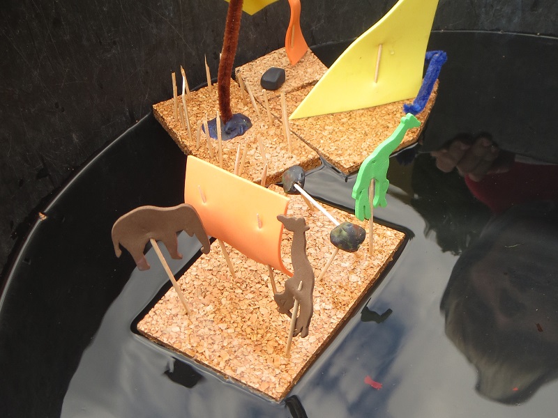 Ich hab aus Zahnstochern, Moosgummi, einer Korkplatte und Knete ein Segelschiff gebastelt.