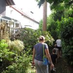 Ein abenteuerlicher Schleichweg führt durch Büsche und an Wohnhäusern vorbei.