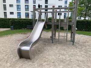 Hier in der Wohnanlage der Südseite in Solln, ist das besondere, dass es ganz viele verschiedene Spielplätze gibt, die zwar alle eher klein sind, aber dafür aber sehr nahe zusammen liegen. Diese Spielplätze sind sehr unterschiedlich und haben verschiedene Spielgeräte.